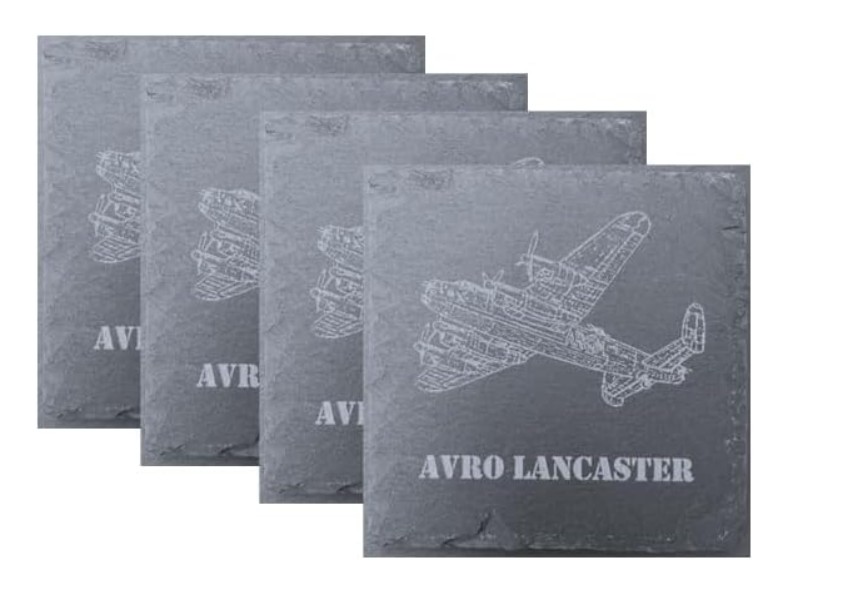 Add a touch of aviation history to your home with this stunning set of 4 slate coasters featuring the iconic Avro Lancaster bomber design. Each coaster measures 10cm x 10cm and is crafted from natural slate, offering both durability and elegance. The Lancaster bomber artwork is precisely etched onto the slate surface, creating a sophisticated grey-on-black contrast that will appeal to history enthusiasts and interior design lovers alike. These coasters are not just functional items but conversation pieces that celebrate British aviation heritage. The natural slate material provides excellent protection for your furniture whilst maintaining a premium feel. Each piece has a thickness of 0.5cm and requires simple maintenance – just wipe clean with a damp cloth. Please note these coasters are not dishwasher safe due to their delicate nature. The set arrives beautifully presented, making it an ideal gift for aviation enthusiasts or anyone who appreciates unique, heritage-inspired home accessories.