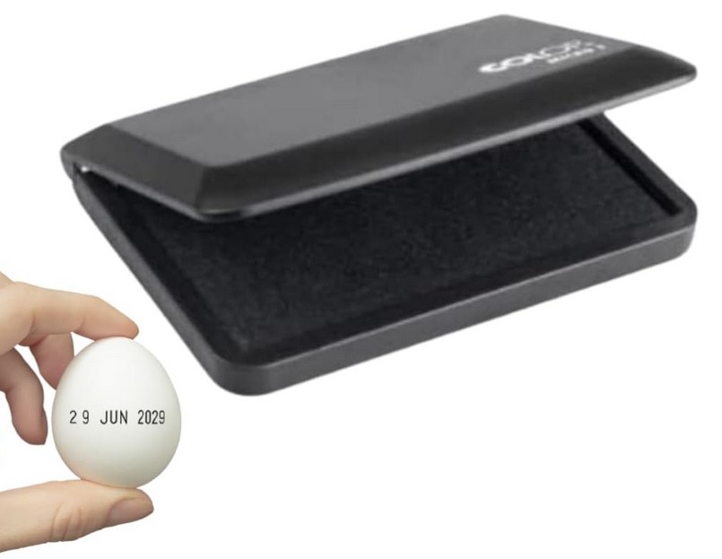 Excellent egg stamping ink pad. The ink is clear and safe, perfect for our poultry farm.