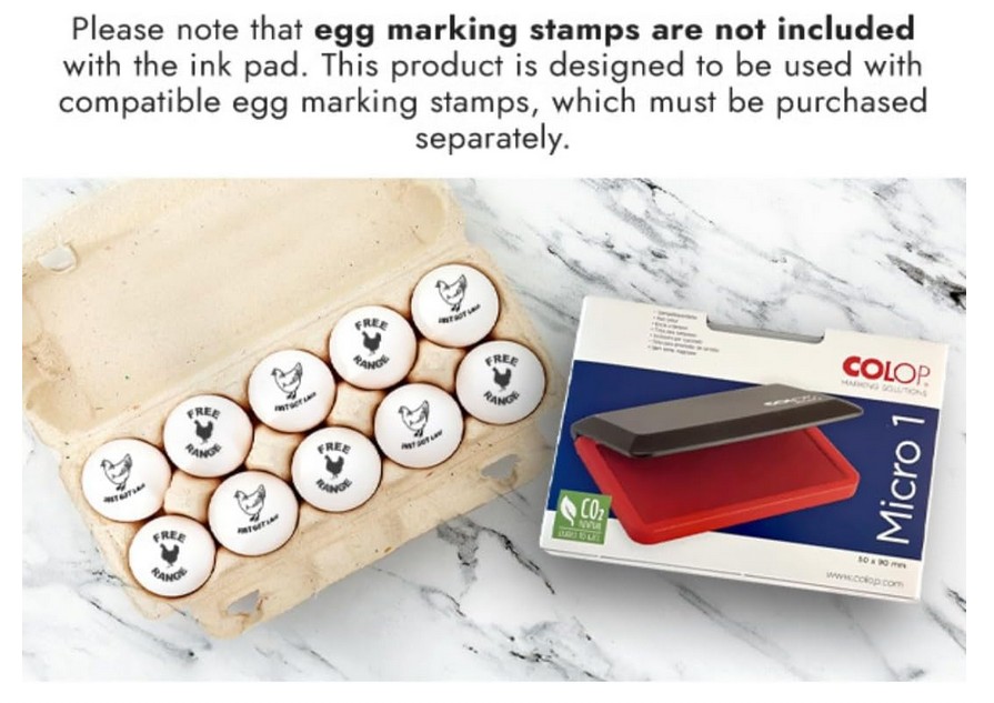 This egg stamping ink pad is specially designed for safe and reliable marking of eggs using food-grade ink. The Handy Stamps Micro 1 ink pad comes pre-inked with high-quality black ink, making it ideal for poultry farmers, egg producers, and food businesses that require safe and clear stamping.