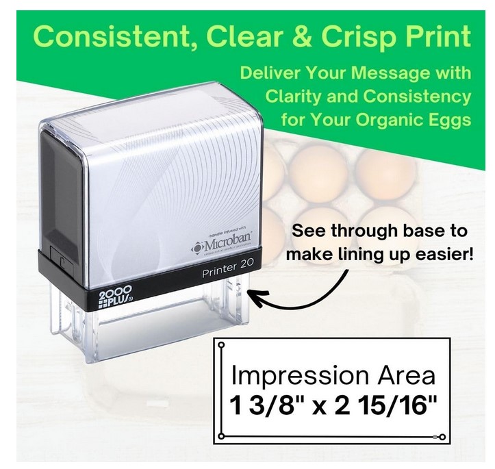 This egg carton stamp allows you to brand your products efficiently while maintaining a professional appearance.