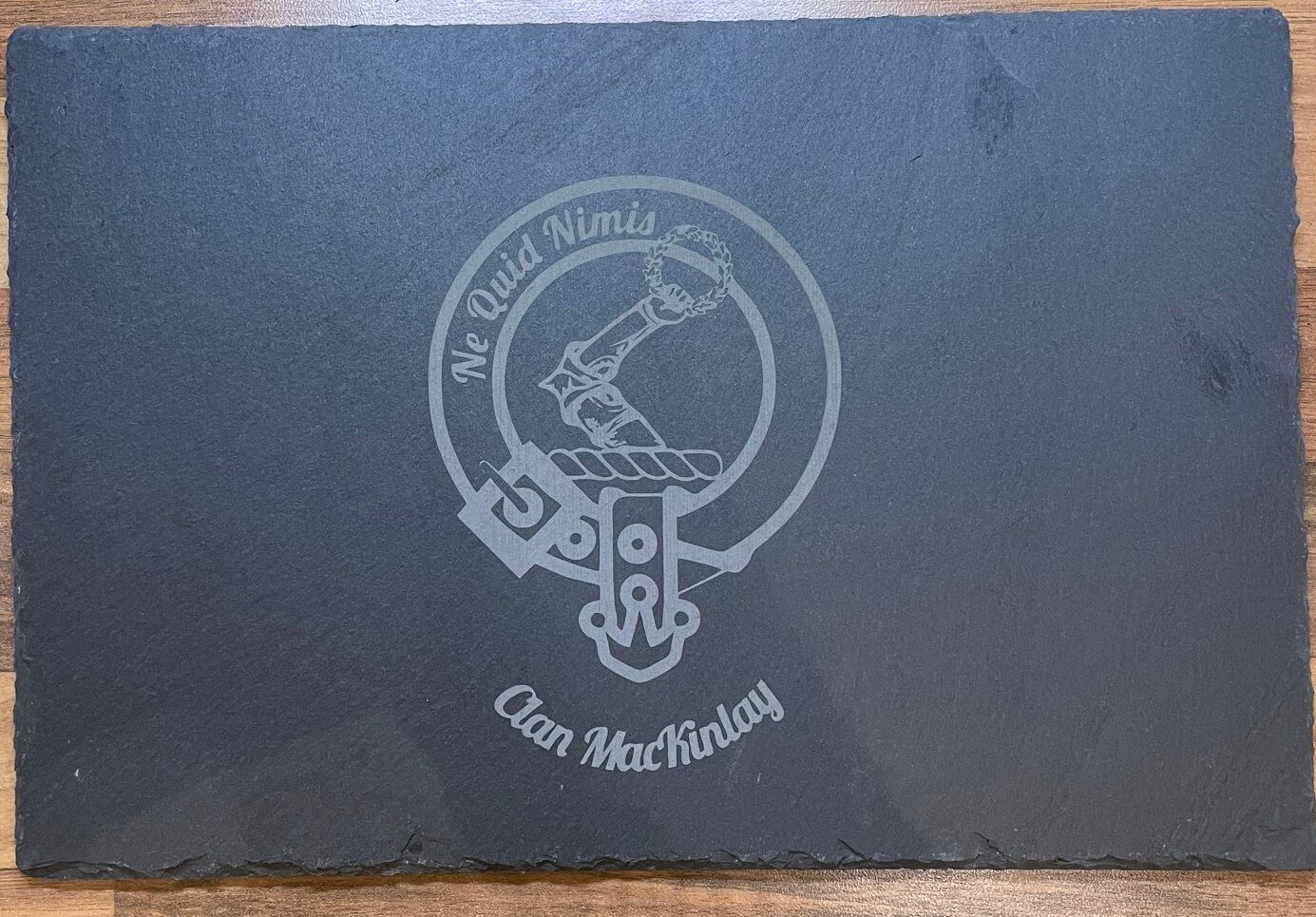 Scottish Clan Crest Surname slate dining set, including 2 Placemats, 2 coasters and 2 glasses (either HiBall or Whisky Tumbler)